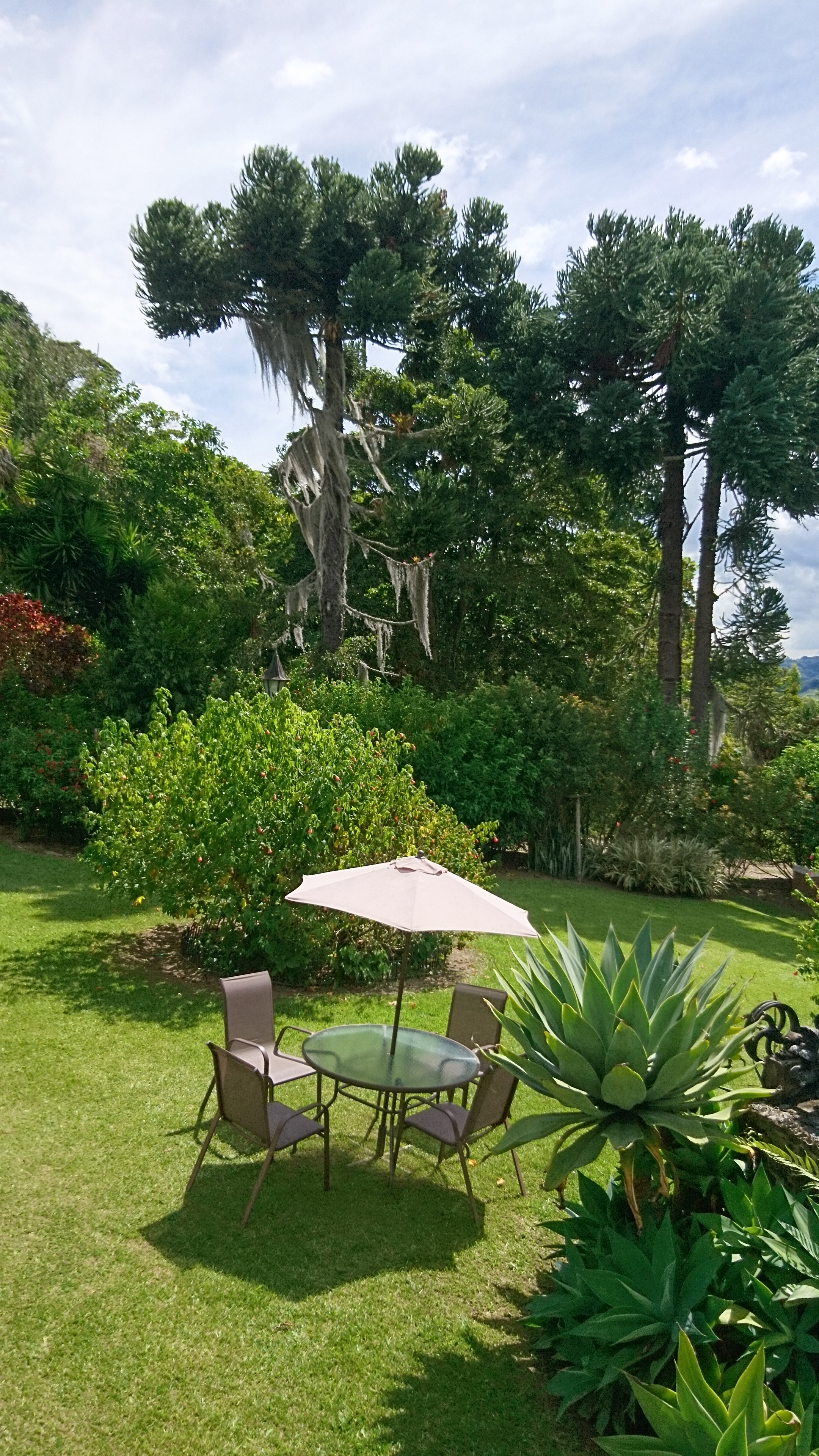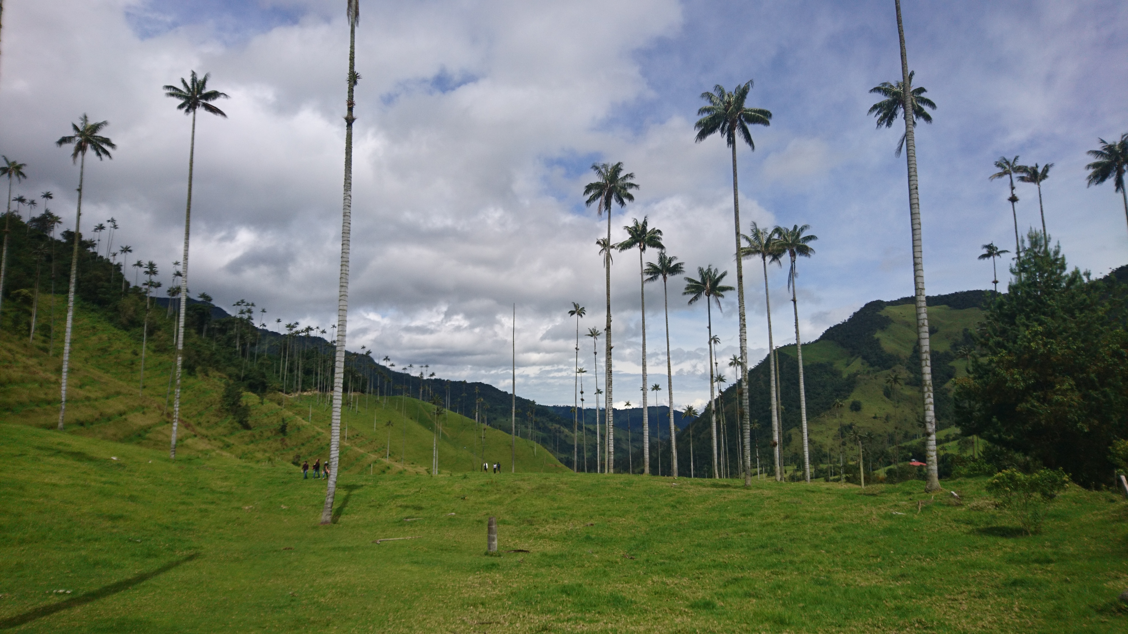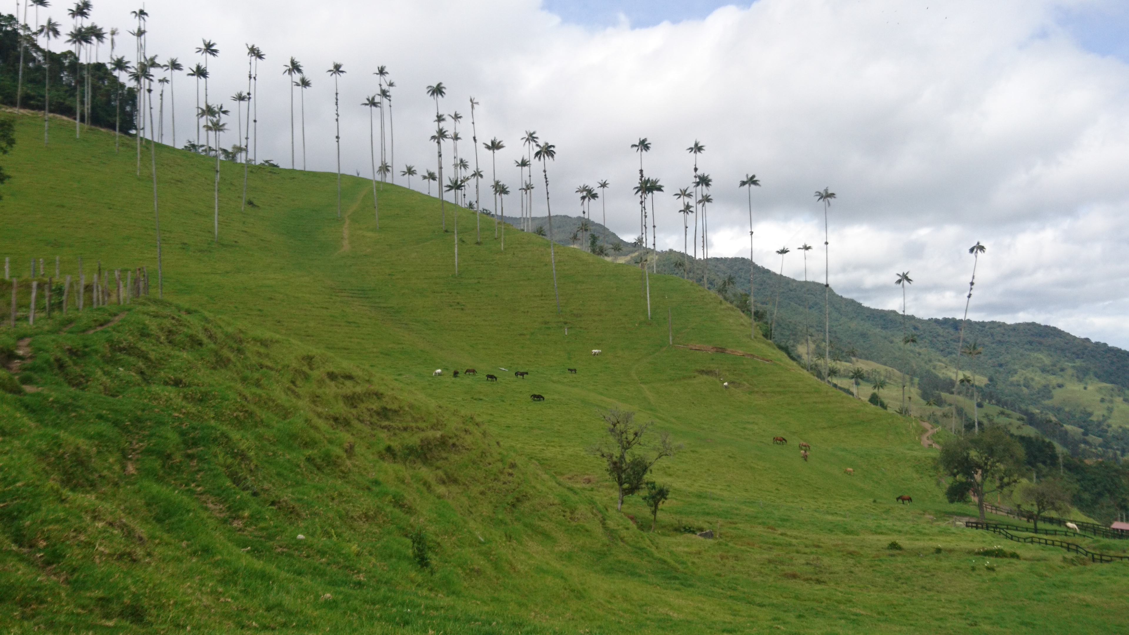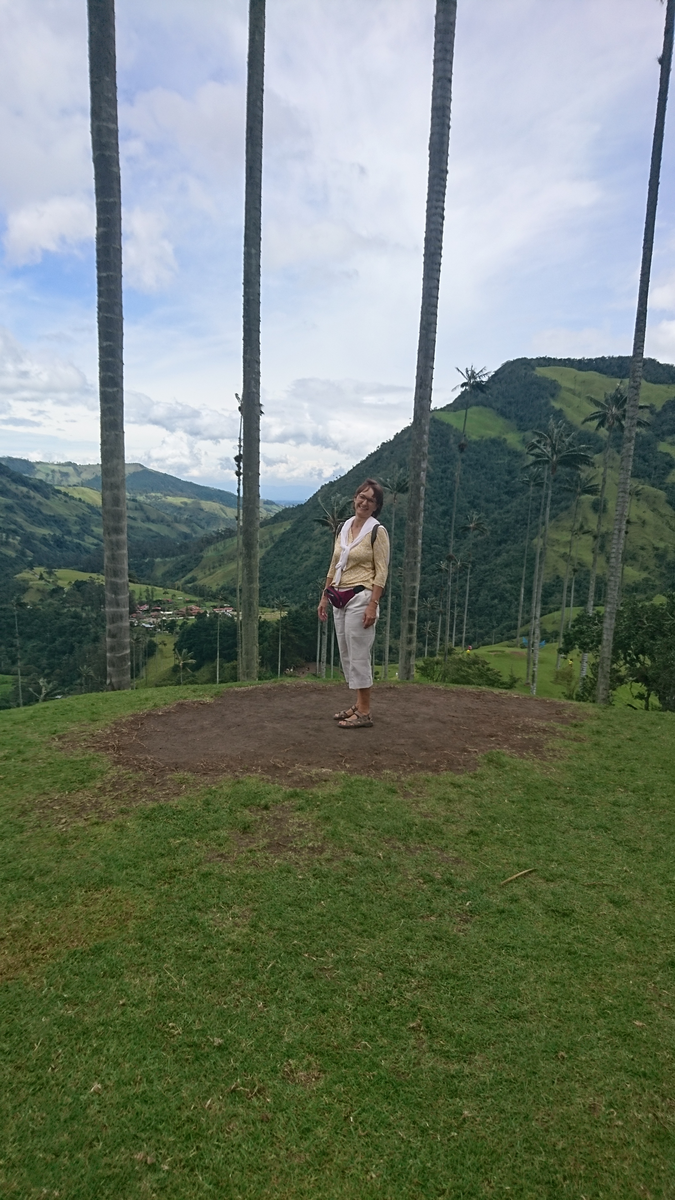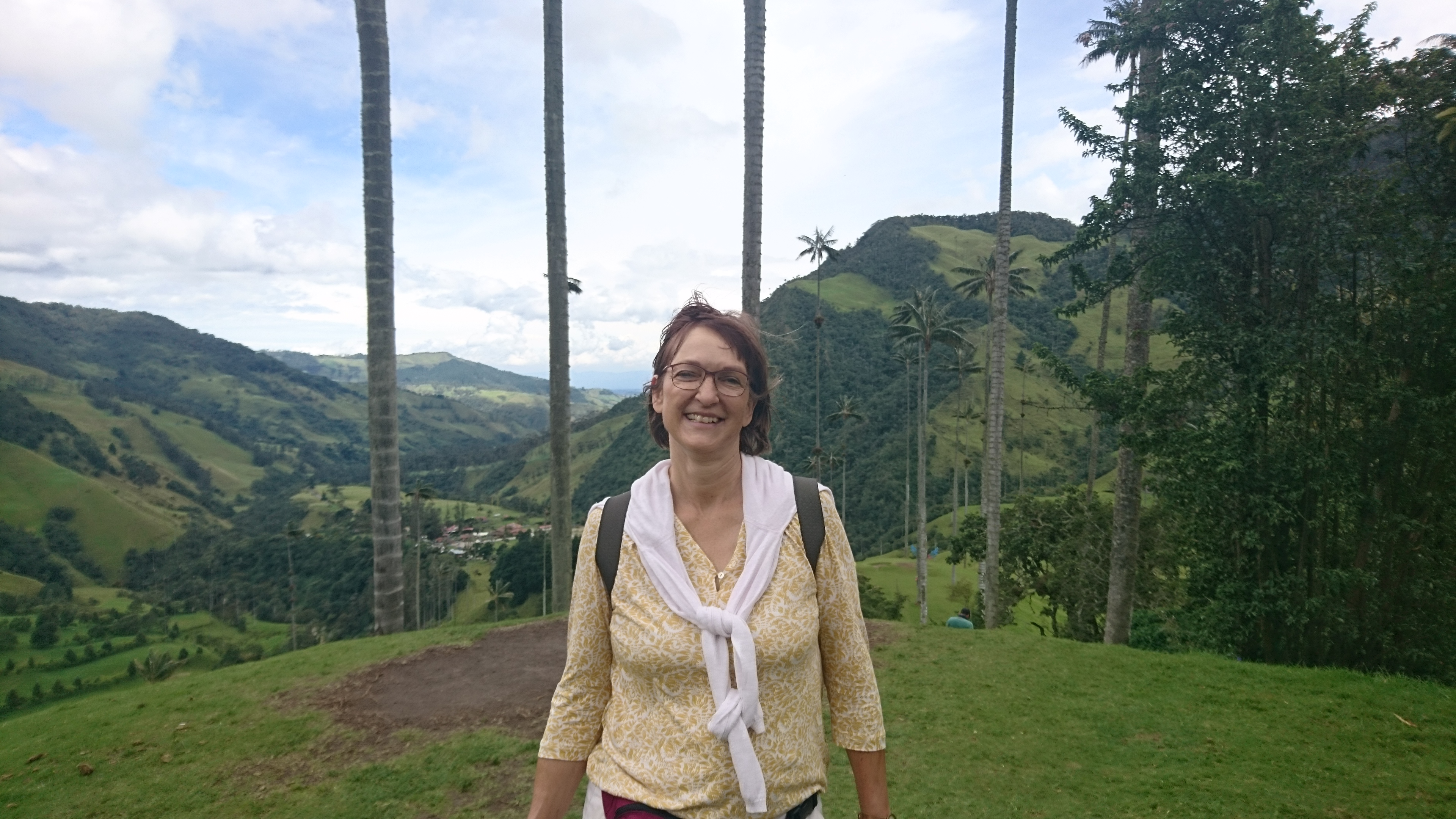 Nach leckerem Frühstück ging es heute um 9h los zum Cocoratal, Nebelwald und Palmen, die 60m hoch werden. Die Wachspalme (ceroxylon quindiuense) ist der Nationalbaum Kolumbiens. Es ist warm, vielleicht 22 Grad, manchmal ganz leichter Niesel, perfekt zum Laufen. Leichter Anstieg 400m hoch, über uns schweben Geier und ein Kondor und ein kleiner Falke sitzt ganz nahe in einem Strauch! Bromelien an den Bäumen und naturlich diese unglaubliche Landschaft mit den imposanten Palmen. Grandios! Picknick mit Aussicht und tiefem Eindruck. Ich bin viel zu kurz hier….